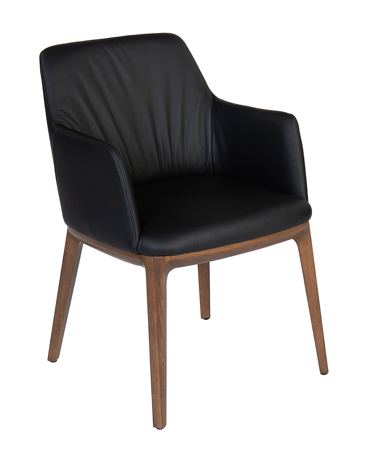The Lidia Arm chair is the ultimate blend of customization, comfort, and versatility, designed to complement any space with ease. Offering a choice between a sleek black metal base or a warm walnut-stained oak wood base, it seamlessly adapts to various aesthetics. Upholstered in luxurious leather, the Lidia comes in multiple color options, ensuring a perfect match for any décor. Available as both an armchair and a side chair, this piece is as adaptable as it is stylish, making it a timeless and versatile addition to any dining setting.