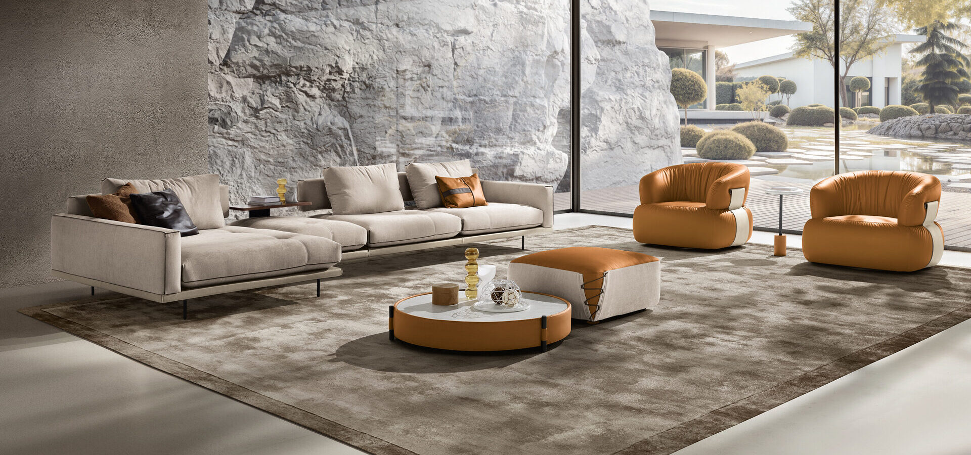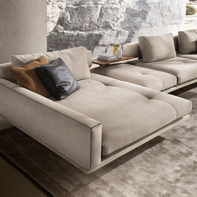Dynamic and linear, Percy stands out for its refined soul and bold personality. The sharped geometrical lines are balanced by the softness of the seat covers, quilted in a unique asymmetrical design. The harmonious play of contrasts makes the Percy a stunning star of the contemporary living space, ideally placed in the middle of the room.