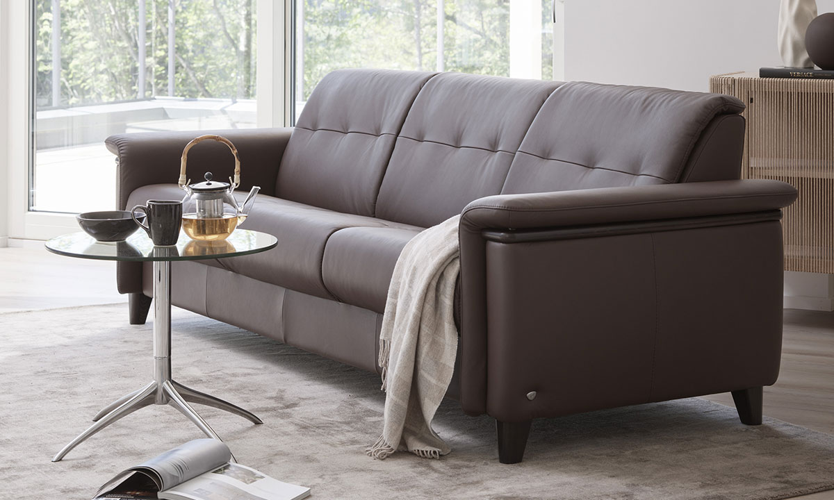 Stressless® Flora boasts a timeless and traditional design with a soft look and a sumptuous seat and back. There is an elegant wood detail on the armrest, available in many different colours. Stressless® has mastered the science within the sofa and cushion design to ensure the upholstery retains its elegant and neat silhouette. The cushions are contoured by French seams for a more precise look.